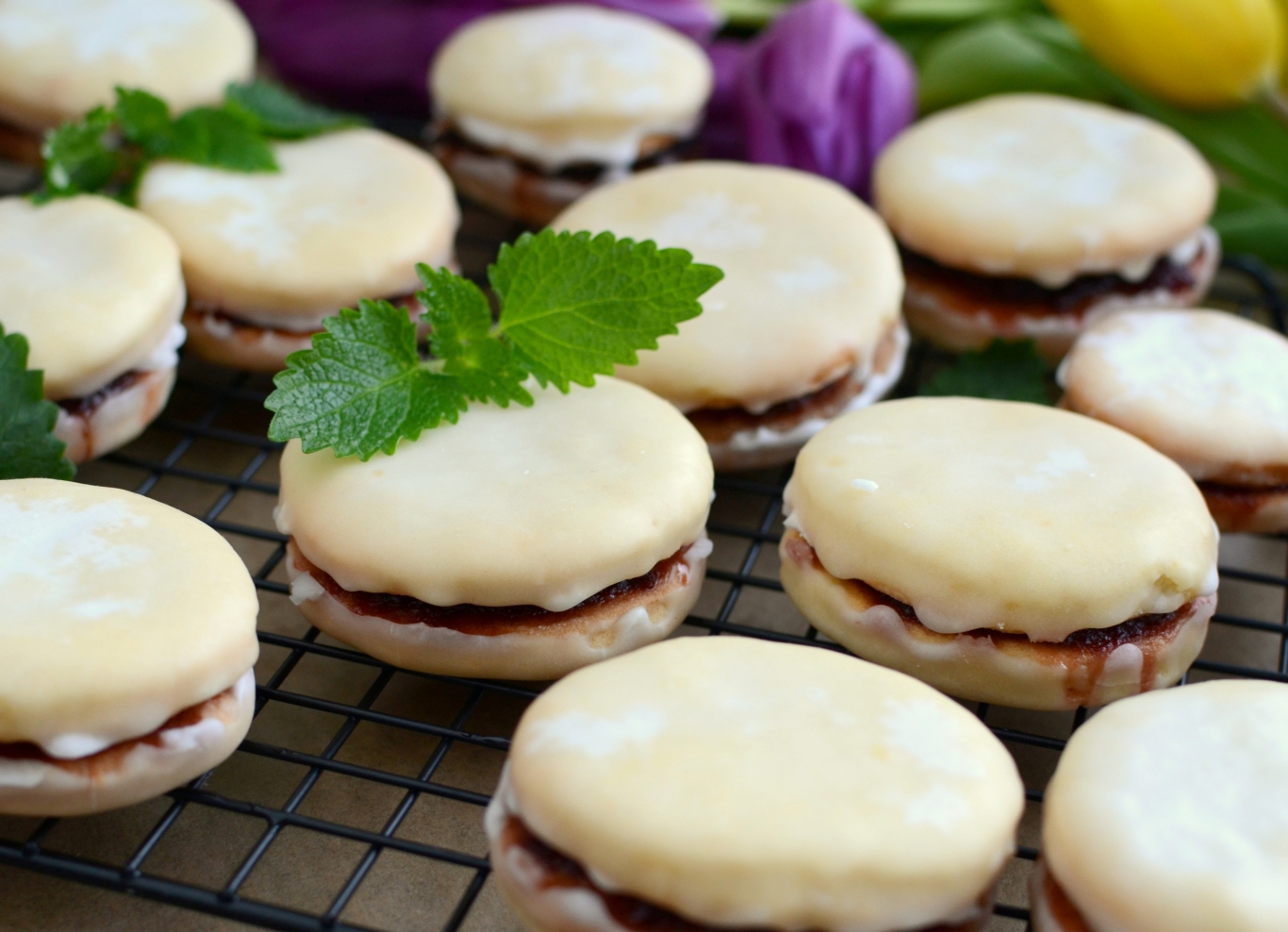 Dziś w "Weekendowej Cukierence" mam przyjemność zaprezentować wspaniałe ciasteczka, które wywodzą się z domu mojego Michała 🙂 Są najczęściej przygotowywane na święta. Przygotowanie ciasteczek zajmuje kilka dni, ale jest rozłożone w czasie. Najpierw pieczemy ciastka. Możemy zrobić to nawet kilka miesięcy wcześniej, bo ciastka świetnie się przechowują. Następnie je lukrujemy, czekamy aż lukier całkowicie wyschnie, i smarujemy dżemem, składamy i gotowe 🙂 Wystarczy poczekać 2-3 dni, a ciastka dzięki wilgotnym powidłom stają się miękkie i wprost rozpływają w ustach. Polecam i dziękuję Pani Matyldzie za przepis 🙂