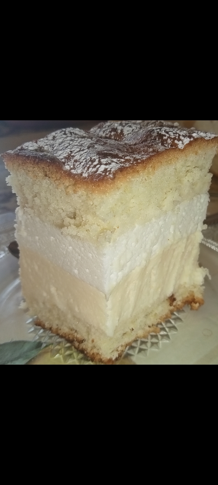 Przed podaniem ciasto oprószamy cukrem pudrem.