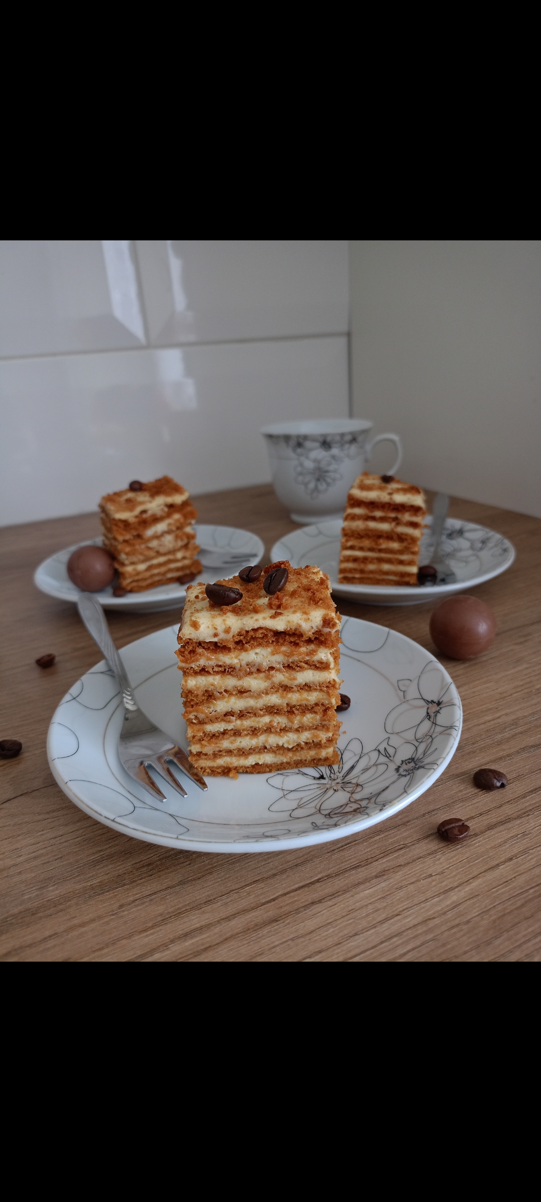 Masa nie jest sztywna, ale taka ma być ☺️ Nadaje się idealnie do przełożenie twardych blatów miodowych. Proporcje kremu do ilości ciasta są idealne.