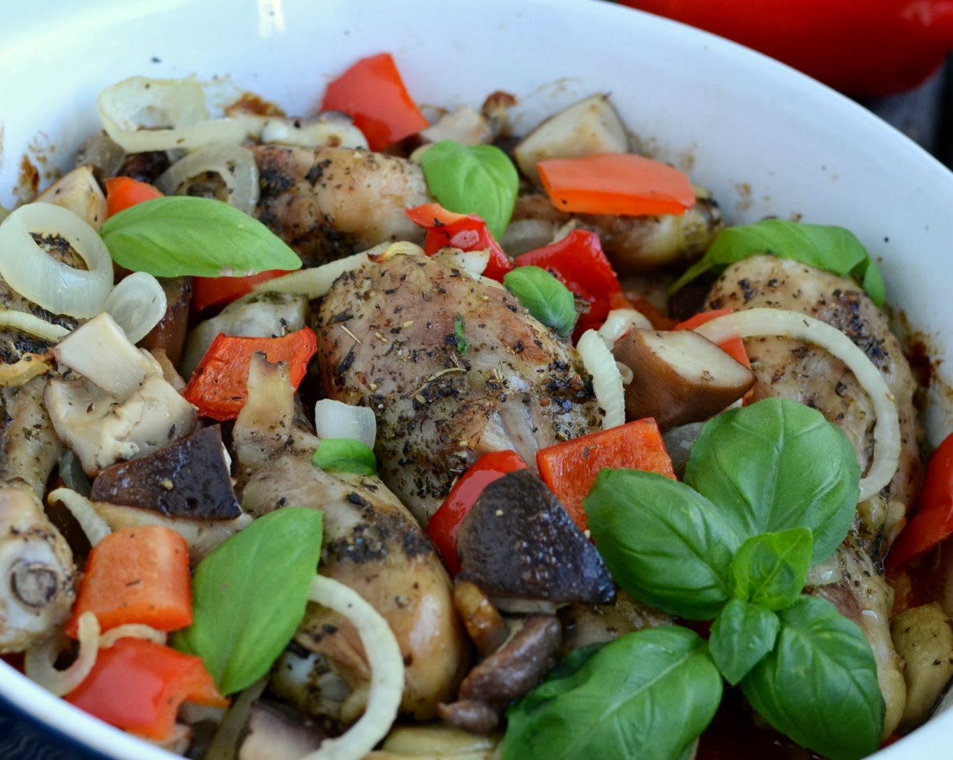 Brrr...było bardzo zimno w piątkowy poranek, a ja dzielnie zbierałam grzybki 🙂 Powiem Wam Kochani, że było warto wstać wcześniej i pomarznąć, bo troszkę tych grzybów do domu przywiozłam. Ponieważ w moim koszyczku znalazły się piękne borowiki, kilka podarował mi mój chłopak (ja gapa, do borowików szczęścia mam mało 😛 ), więc z takich okazów musiało powstać wyjątkowe danie. Miałam akurat pałki z kurczaka i paprykę, więc wszystko razem zapiekłam, powstało bardzo kolorowe, aromatyczne, pachnące lasem danie. Jego przygotowanie zajmuje kilka minut, a ten smak mmmm polecam 😉