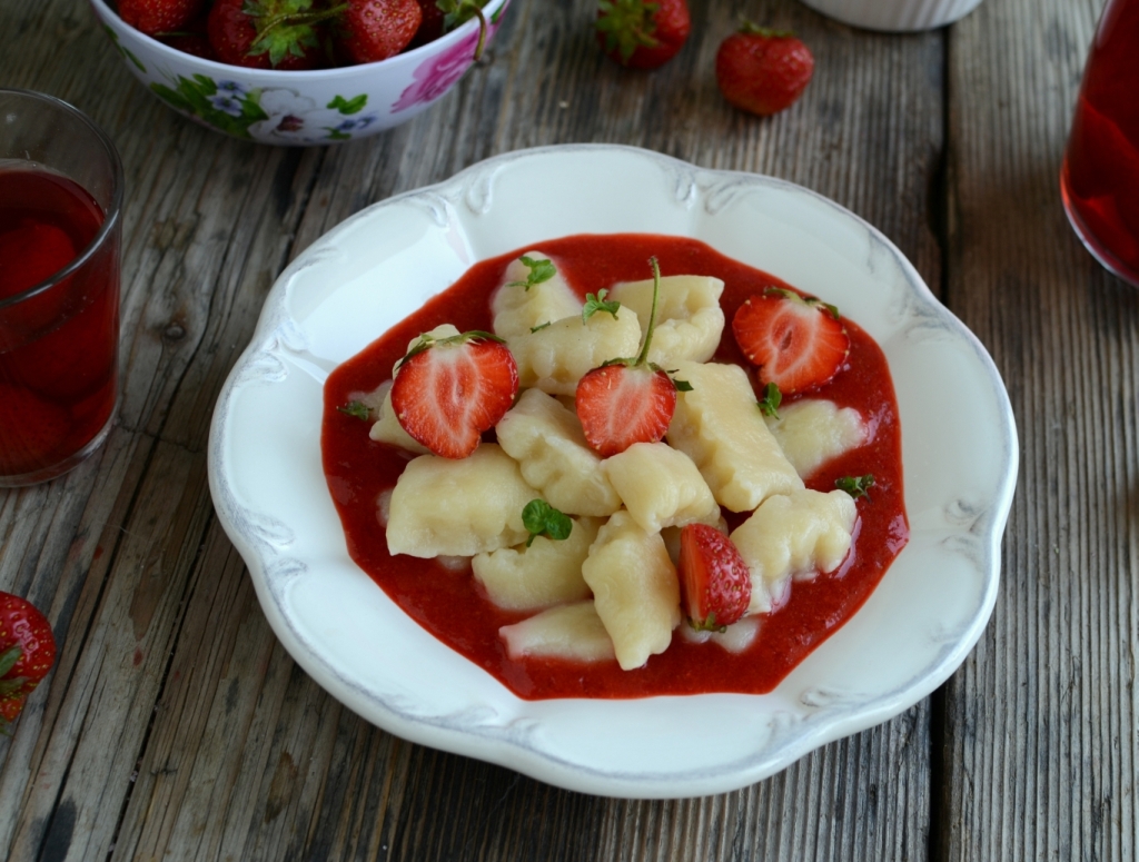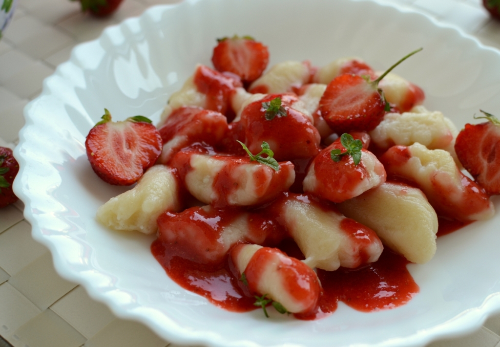 Truskawki powoli się kończą, ale ja Was jeszcze troszkę nimi pomęczę 🙂 Przygotowałam kilka smakołyków i chce się nimi z Wami podzielić. Dzisiaj propozycja śniadaniowa, deserowa, a nawet obiadowa. Kluseczki są bardzo delikatne w smaku, wbrew pozorom dość szybkie do przygotowania, możecie przygotować je na leniwe śniadanko, jako deser lub nawet słodki obiad. Gorąco polecam 🙂
