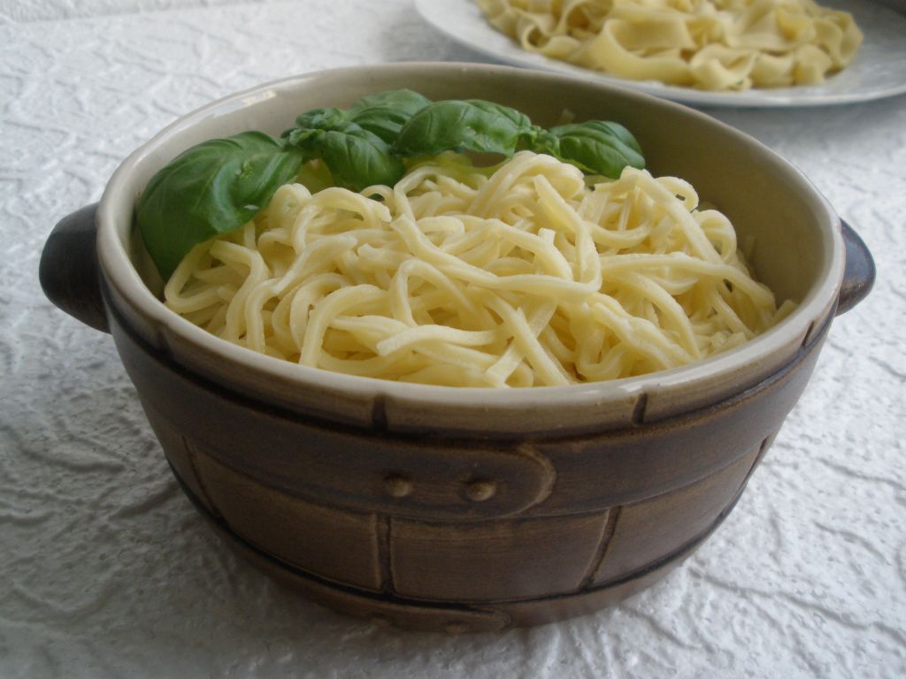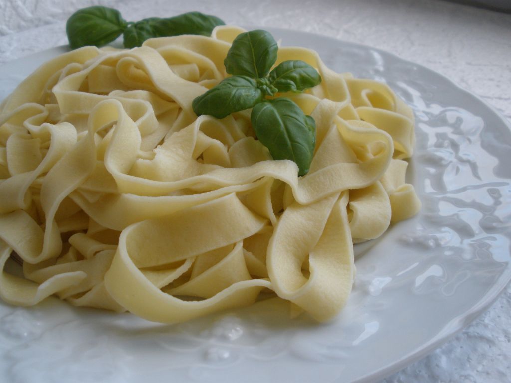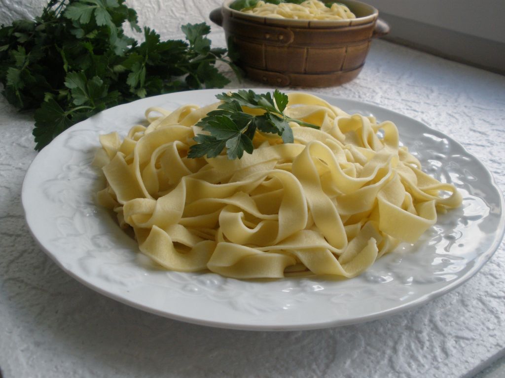 Jeśli choć raz spróbujecie domowego makaronu to z pewnością zapomnicie o makaronie ze sklepowej półki. Taki makaron robiła moja mama i babcia, dziś przygotowałam go ja 🙂 Samo przygotowania zajmuje troszkę czasu więc lepiej zrobić taki makaron od razu z większej ilości składników.Jeżeli macie maszynki do makaronu to na pewno przyspieszą one cały proces. Przygotowany makaron można później zamrozić i cieszyć się jego smakiem o każdej porze dnia i nocy.