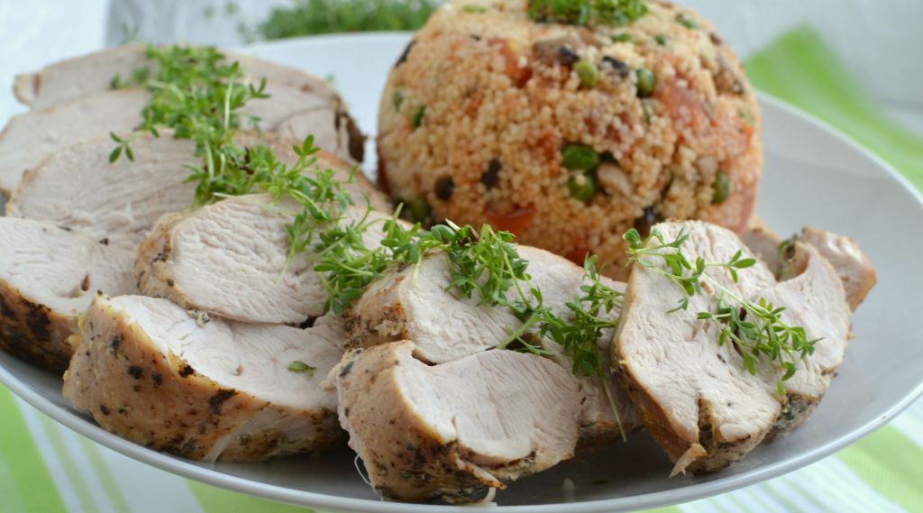 Kuskus przygotowujemy według przepisu na opakowaniu. Pieczarki obieramy i kroimy w kostkę. Podsmażamy je na tłuszczu dodając groszek. Pod koniec smażenia dodajemy pokrojonego w kostkę pomidora, doprawiamy do smaku. Dodajemy kuskus i całość mieszamy. Gotowego indyka podajemy pokrojonego w plastry z kuskusem z warzywami. Smacznego 😉