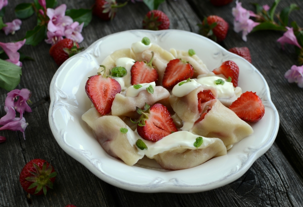 To już chyba jeden z ostatnich przepisów z truskawkami w tym sezonie. Oczywiście nie mogło zabraknąć przepysznych pierogów z truskawkami, które zazwyczaj jemy polane śmietanką i posypane cukrem 🙂 Są naprawdę pyszne, musicie ich spróbować 🙂