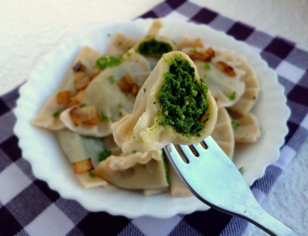 Zapraszam Was dzisiaj gorąco na pierogi ze szpinakiem i ricottą. Pierogi są bardzo sycące, dzięki dodatkowi serka - kremowe i mają taki wspaniały kolor 🙂 Uwielbiam robić pierogi, zamrażać je i móc się nimi delektować kiedy tylko będę chciała 🙂