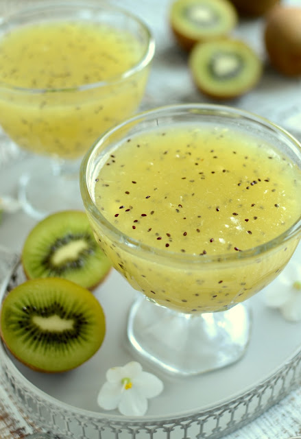 Przygotowanie domowego kisielu jest dziecinnie proste – jego bazą są owoce (lub owocowy sok) i mąka ziemniaczana. Polecam zielony kisiel w czarne kropki – smaczny i orzeźwiający – z dodatkiem kiwi. Będzie idealny na deser bądź podwieczorek. Zobaczcie także jak przygotować kisiel o smaku owoców leśnych.