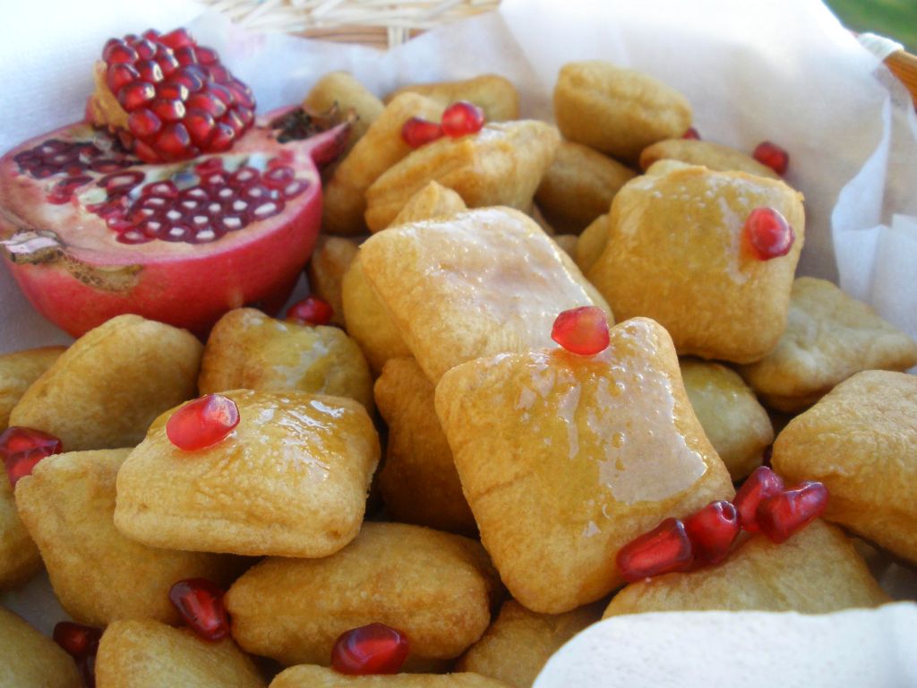 Racuszki różnią się od znanych w Polsce pulchnych i mięciutkich racuszków. Są trochę gumowate i twardsze. Dopiero, gdy przesiąkną cynamonowym miodem stają się mięciutkie, słodkie i nie można się im oprzeć. Ich smak świetnie dopełniają soczyste ziarna granatu. Mam nadzieję, że zakochacie się w nich tak jak ja 🙂